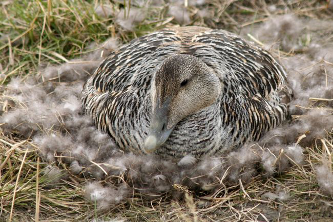 Daunendecke – Daunendecken werden auch heute noch aus den feinen Daunenfedern der Eiderente gewonnen. Diese Enten verwenden diese Daunen selbt nur zur Wärmeisolierung ihrer Nester. Eiderentenbauern gehen sehr respektvoll mit diesen Enten um und „ernten“ die Federn erst nach der Brut.