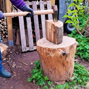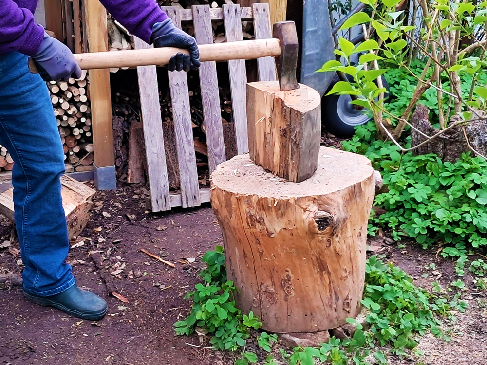 Mit einer Axt oder einem Beil stärkere Äste zum Bauen oder Feuermachen z.B. von einem Baum abschlagen.