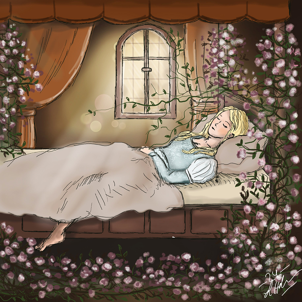 Und tatsächlich fällt das ganze Land für 100 Jahre in einen tiefen Schlaf. In dieser Zeit wächst eine undurchdringliche Dornenhecke um das Schloss, die nur ein ganz besonderer Prinz besiegen kann, was auch geschieht.